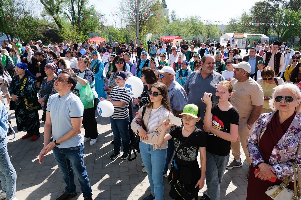 Территория парка в этот день стала разноцветным ковром, «сшитым» из площадок, на которых представляли свою культуру и традиции представители народов, проживающих в Астраханской области. Казахи, татары, ногайцы, азербайджанцы, дагестанцы, чеченцы, узбеки, таджики, турки-месхетинцы гостеприимно встречали участников праздника, угощая их блюдами национальной кухни.