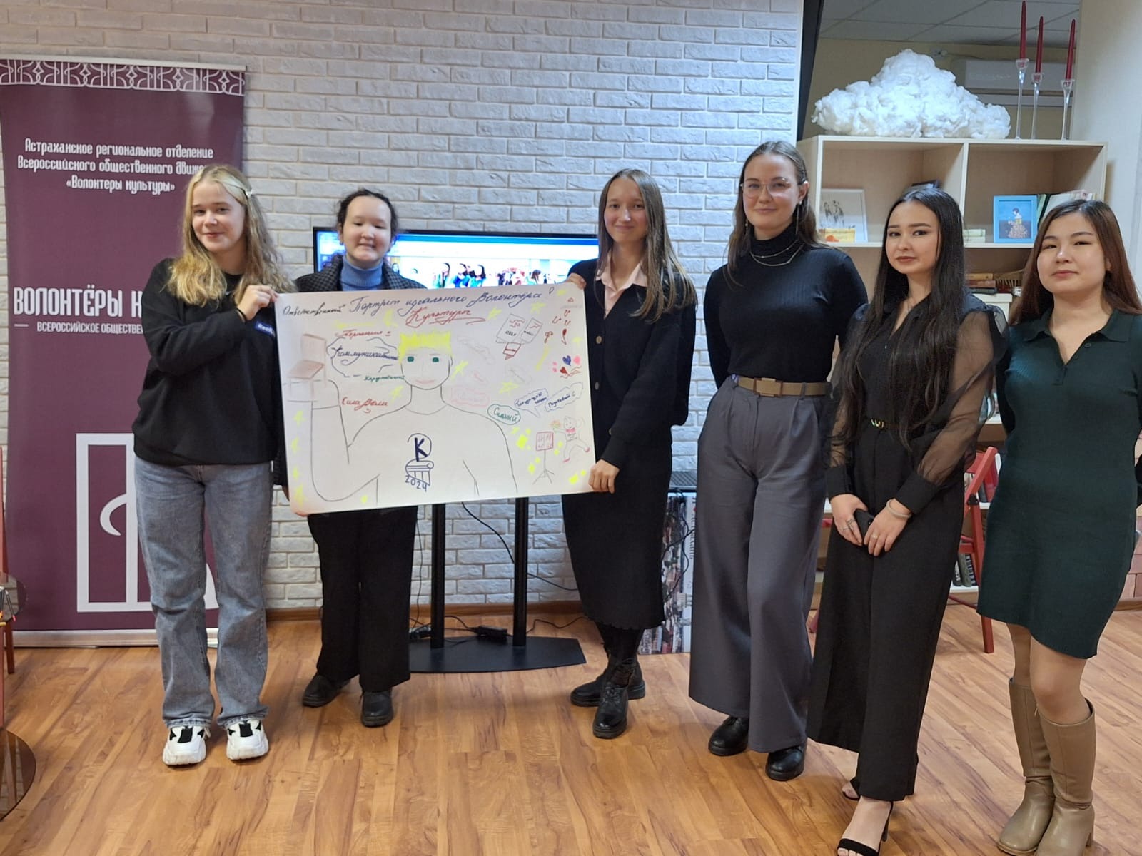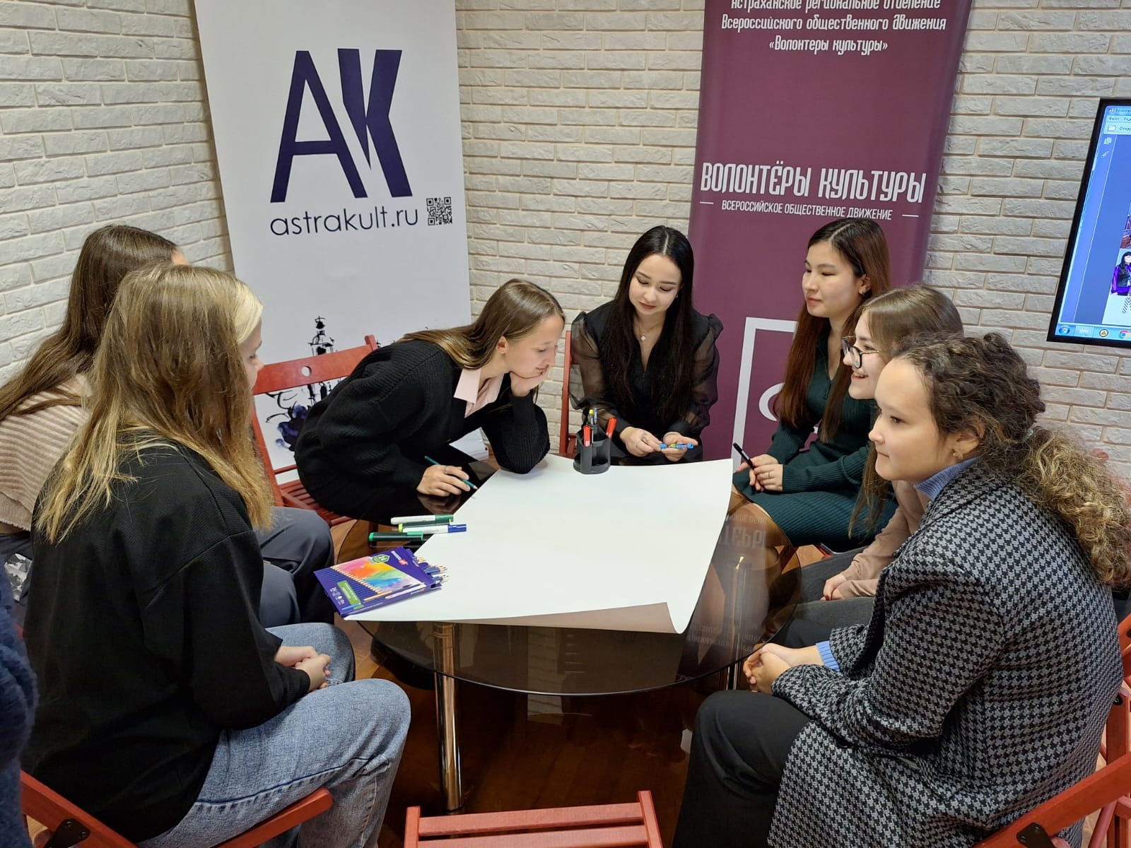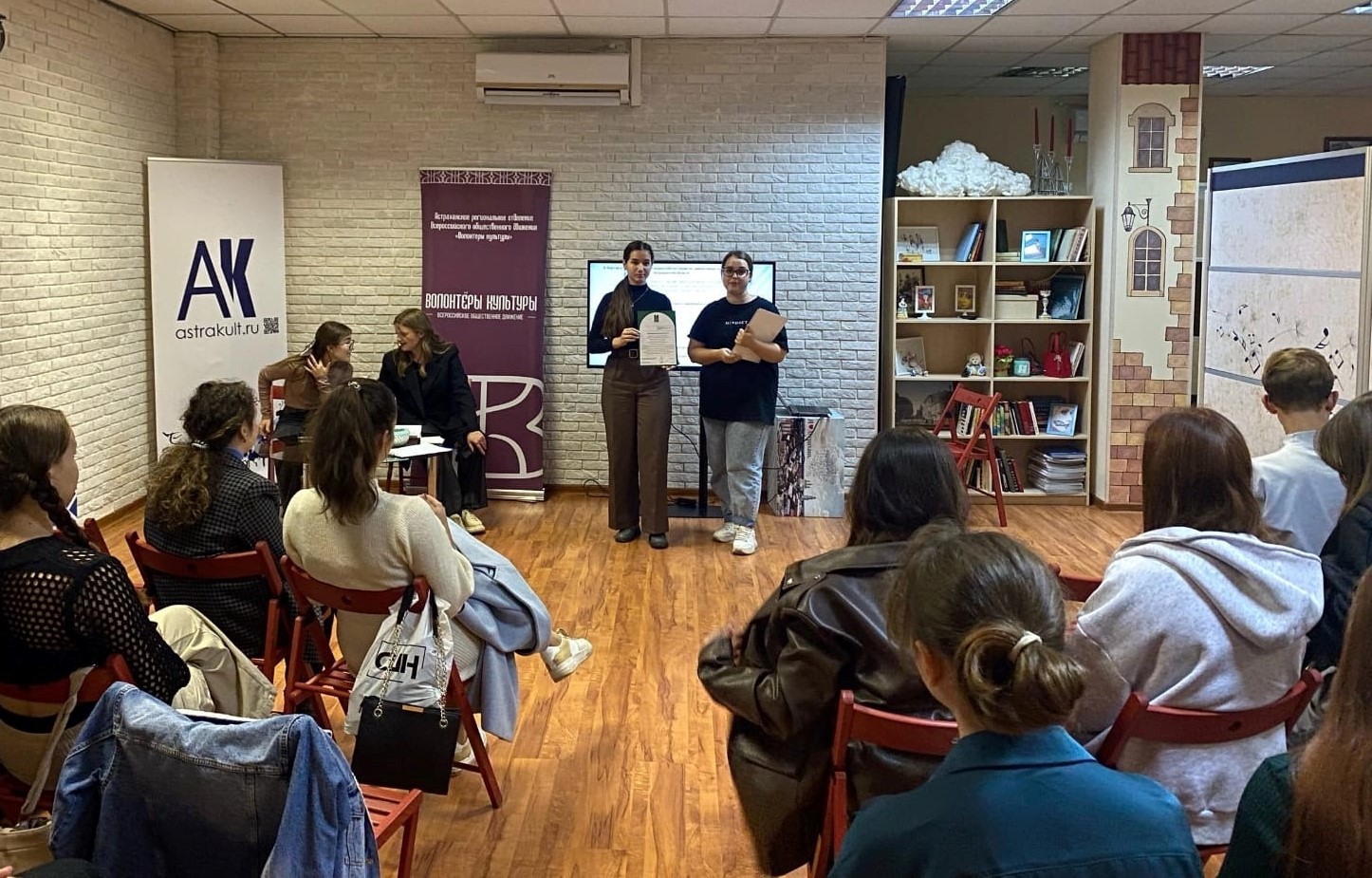 В творческом пространстве АстраКульт состоялось общее собрание волонтеров культуры региона. Накануне руководитель отделения Кристина Тулупова провела презентацию движения для недавно вступивших добровольцев: рассказала, кто такие волонтеры культуры, каковы их основные цели и задачи, а также представила направления деятельности, интересные проекты и конкурсы.