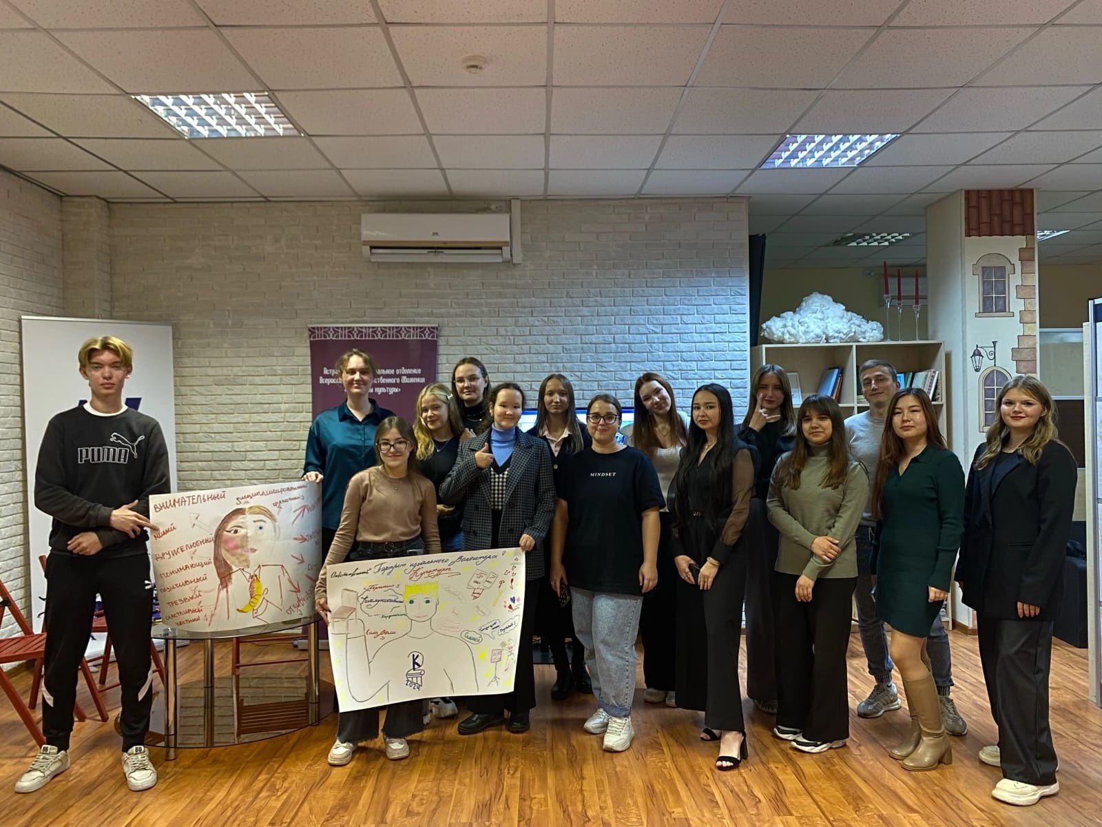 После диалога был проведен интересный интерактив. Добровольцы разделились на две команды и нарисовали портрет идеального волонтера культуры. Каждая команда креативно подошла к выполнению задания: в ход пошли карандаши, краски, маркеры. Потом ребята представили свои работы.