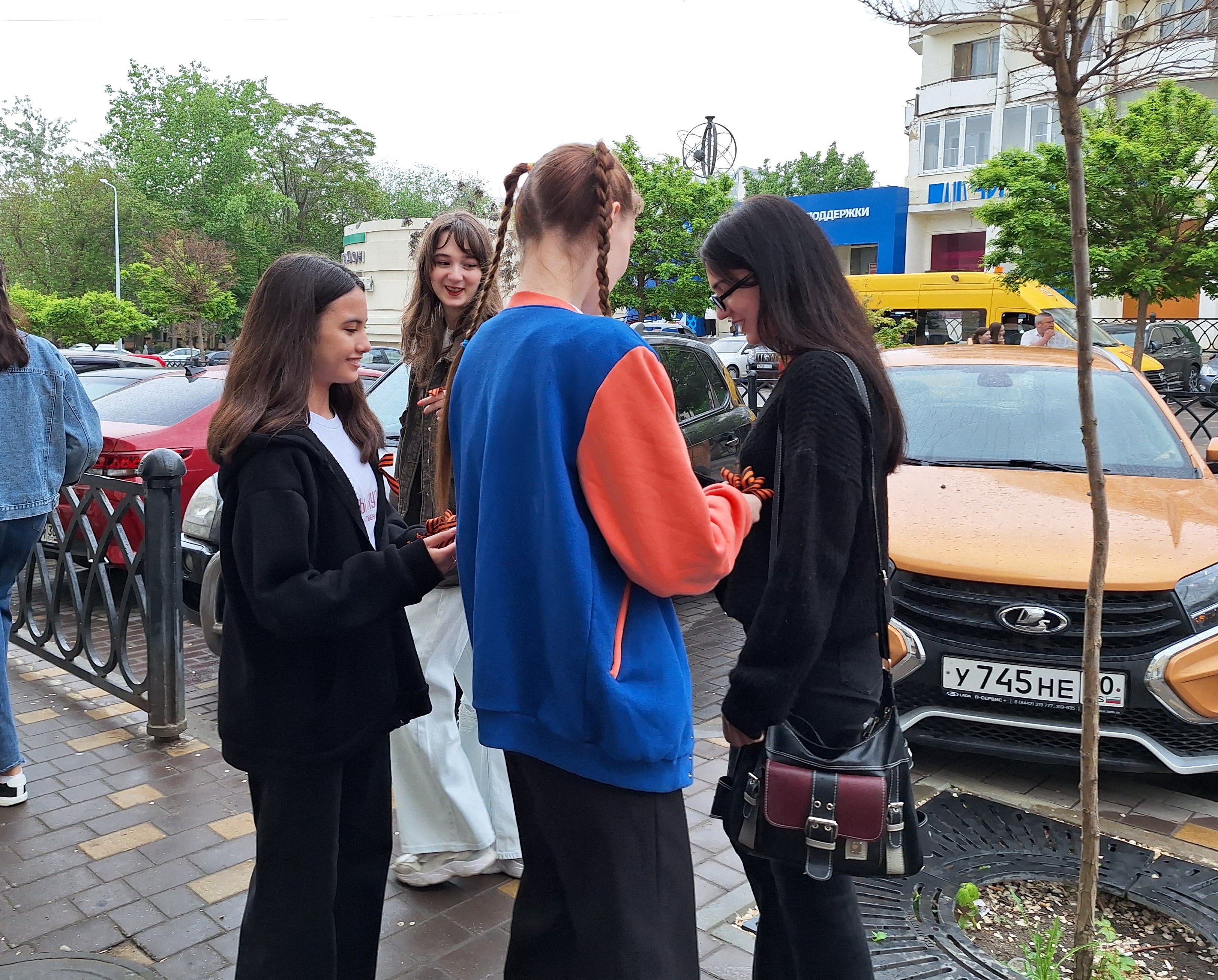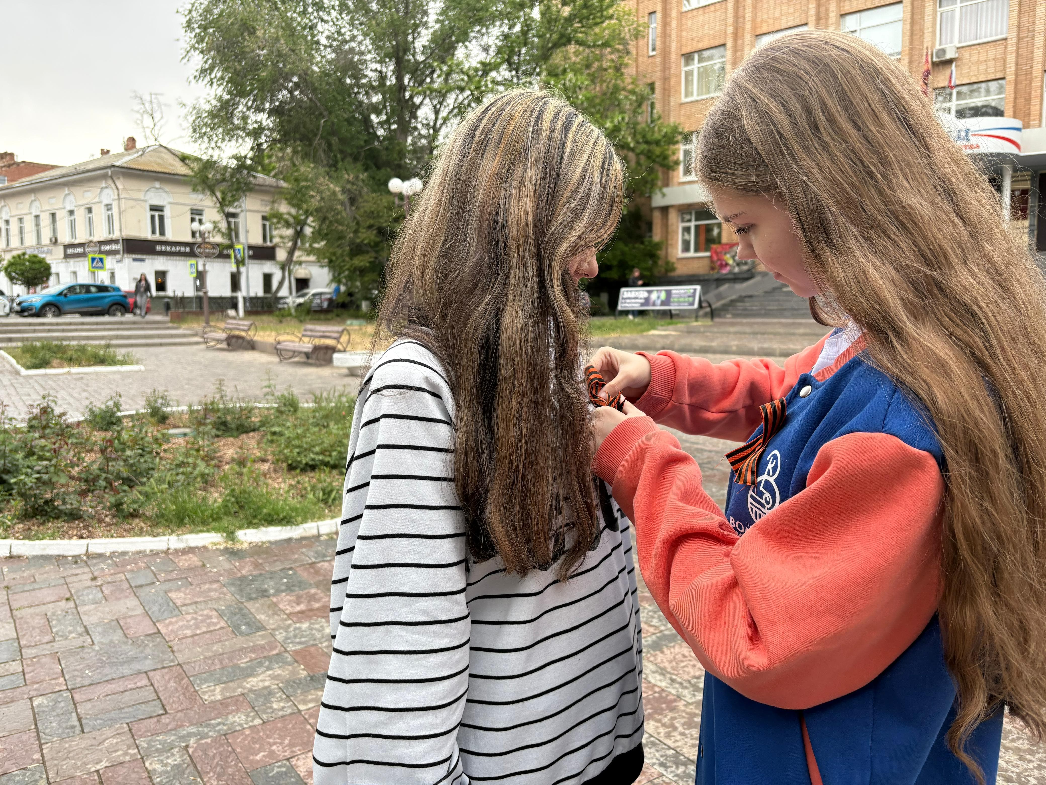 Сегодня на разных площадках города волонтёры культуры раздавали георгиевские ленточки астраханцам. Они не только вручали ленты, но и объясняли их значение: чёрный и оранжевый цвета символизируют дым и огонь, а сама лента напоминает о георгиевской медали, которую вручали за мужество и героизм.